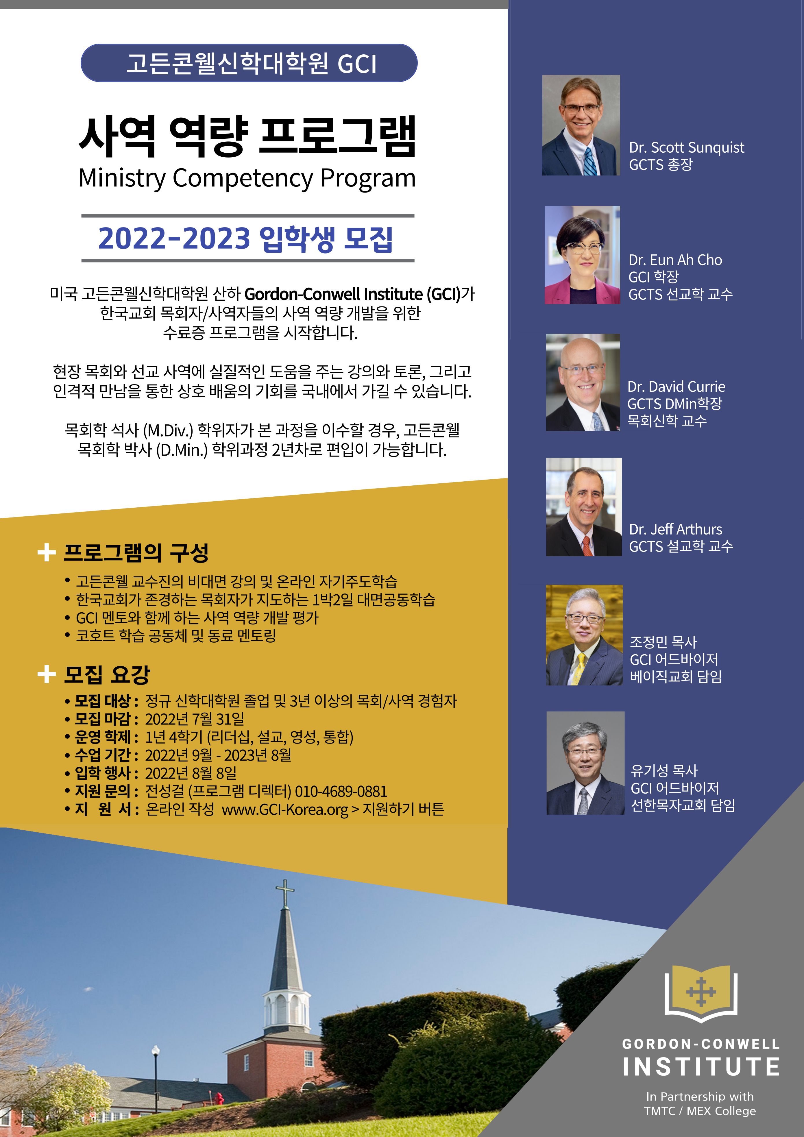 1. 지원 대상: 정규신학대학원 졸업 및 3년 이상의 목회/사역 경험자