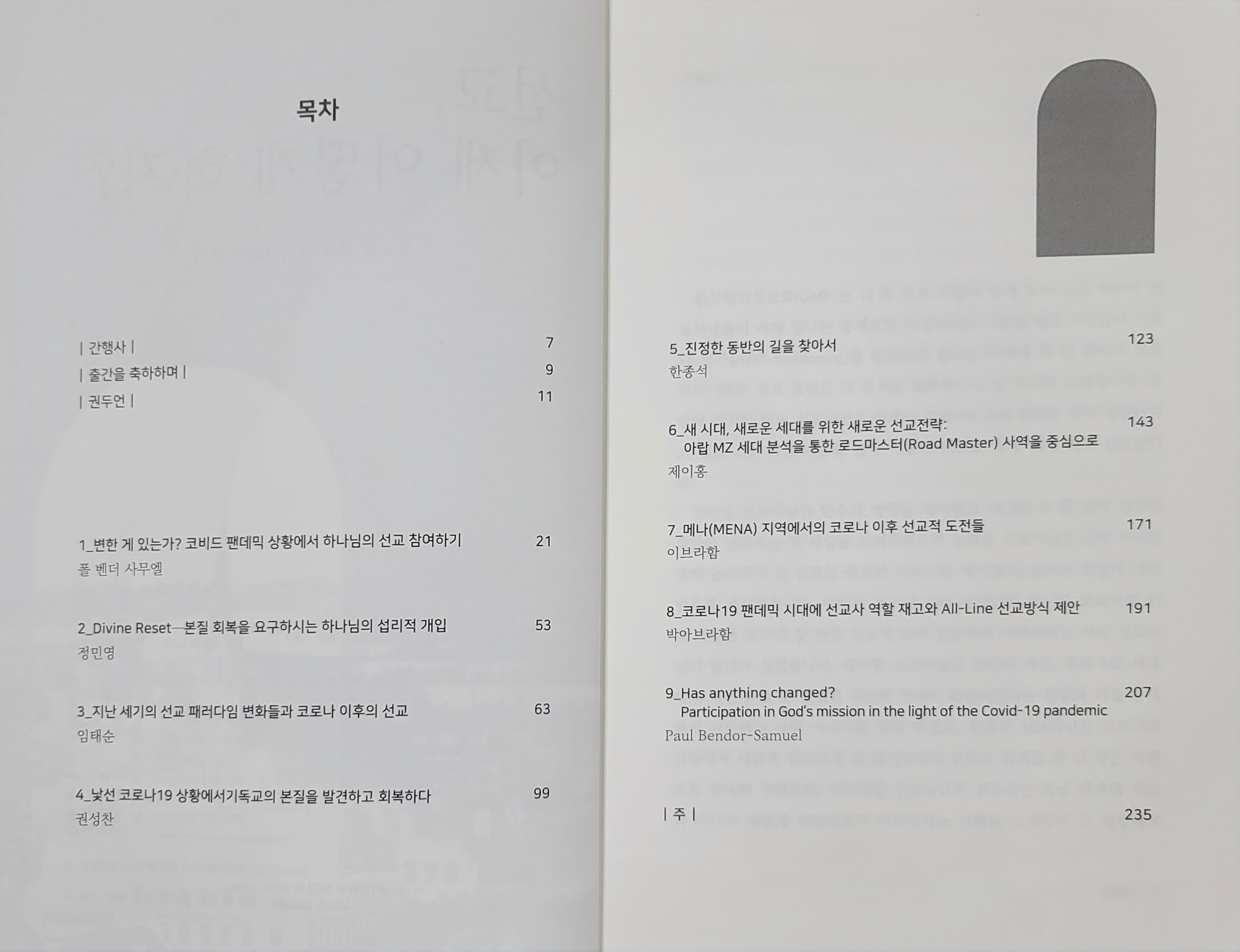 얼마전 코로나 이후의 선교를 반추하기 위해 본부와 현장 선교사 몇 분이 발제하여 유익한 시간을 가졌는데 그 때 발제했던 글들을 모아 단행본으로 펴 내게 되었습니다. 본부의 선교사님들과 현장 선교사님들, 그리고 코로나 이후의 선교에 관심있는 분들에게 좋은 반추 자료가 될 것으로 보입니다.