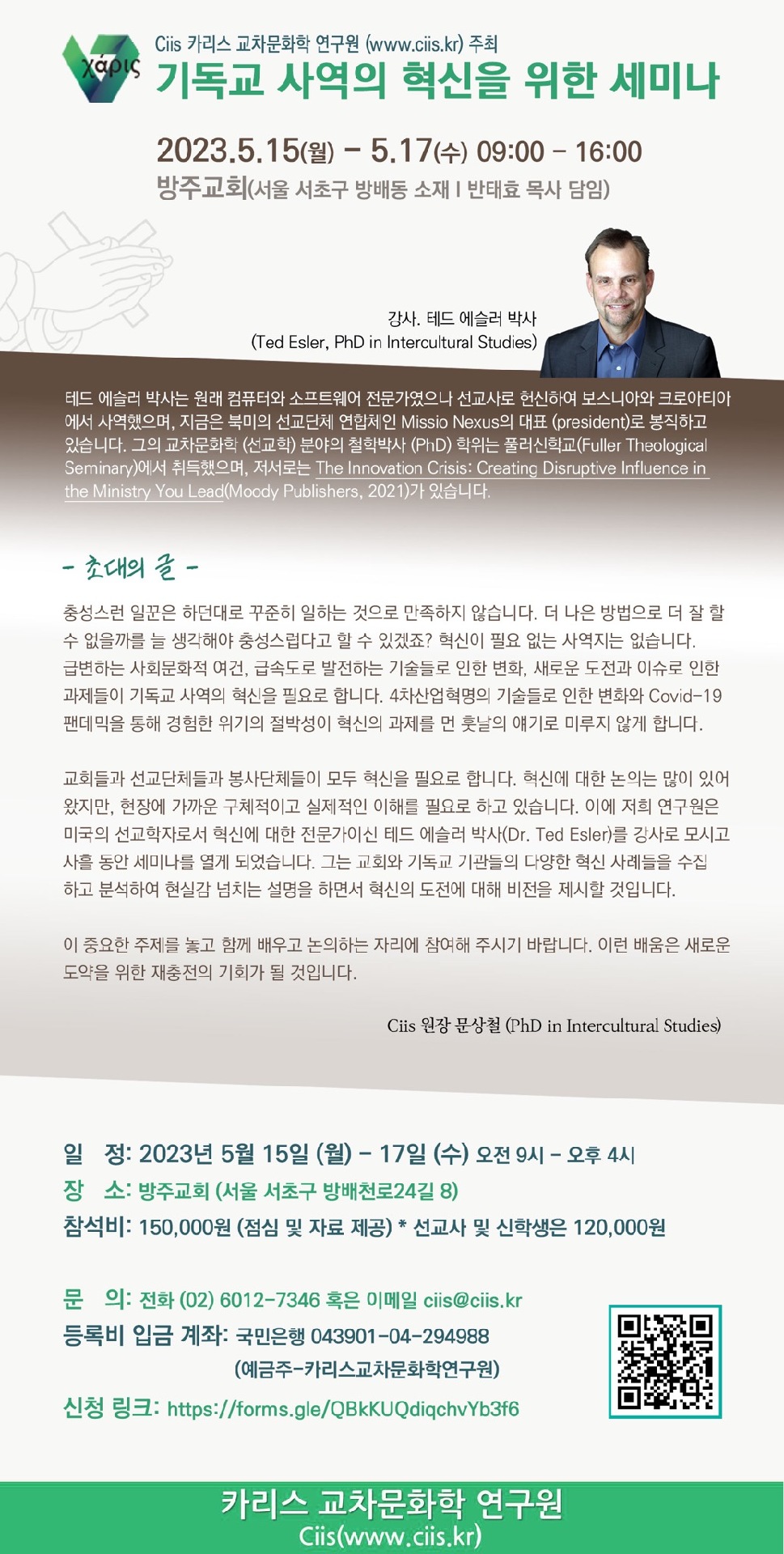 저희 문상철 이사님이 사역하는 카리스 교차문화학 연구원에서 사역자들을 위한 세미나를 개최합니다. 관심있는 분들은 아래 링크로 들어 가셔서 신청하시면 됩니다. 자세한 소개는 아래 포스터를 참고해 주시기 바랍니다.