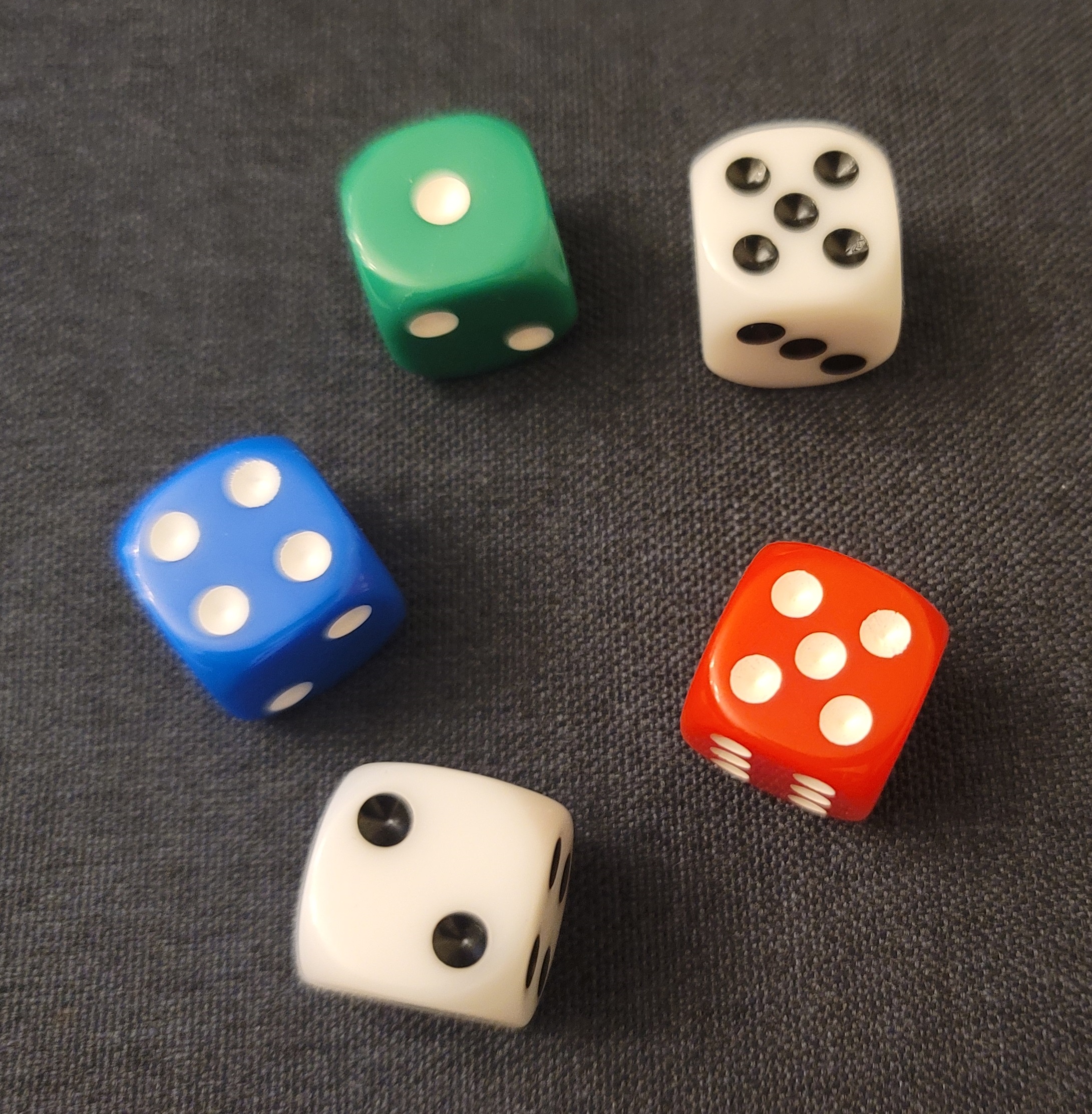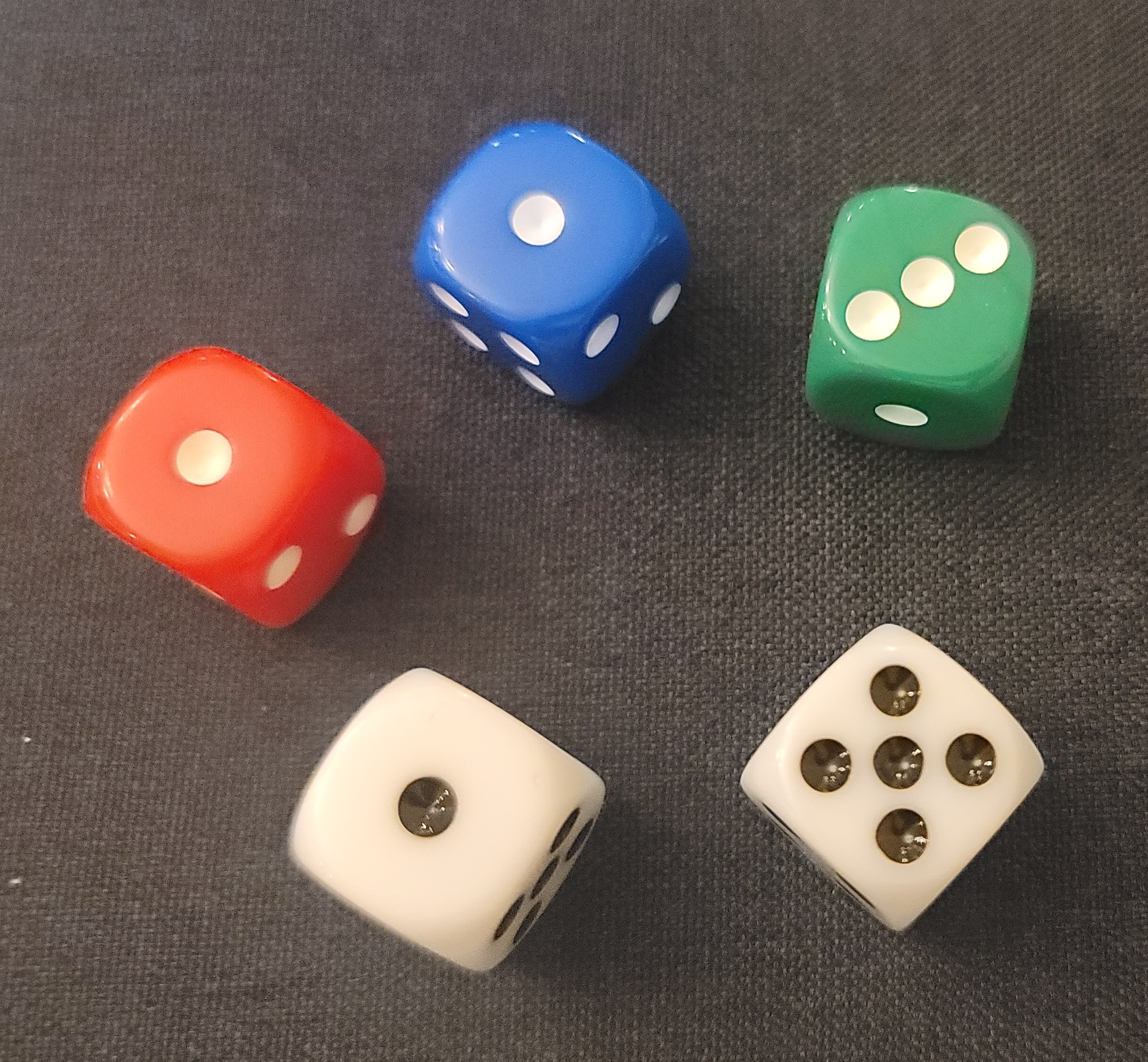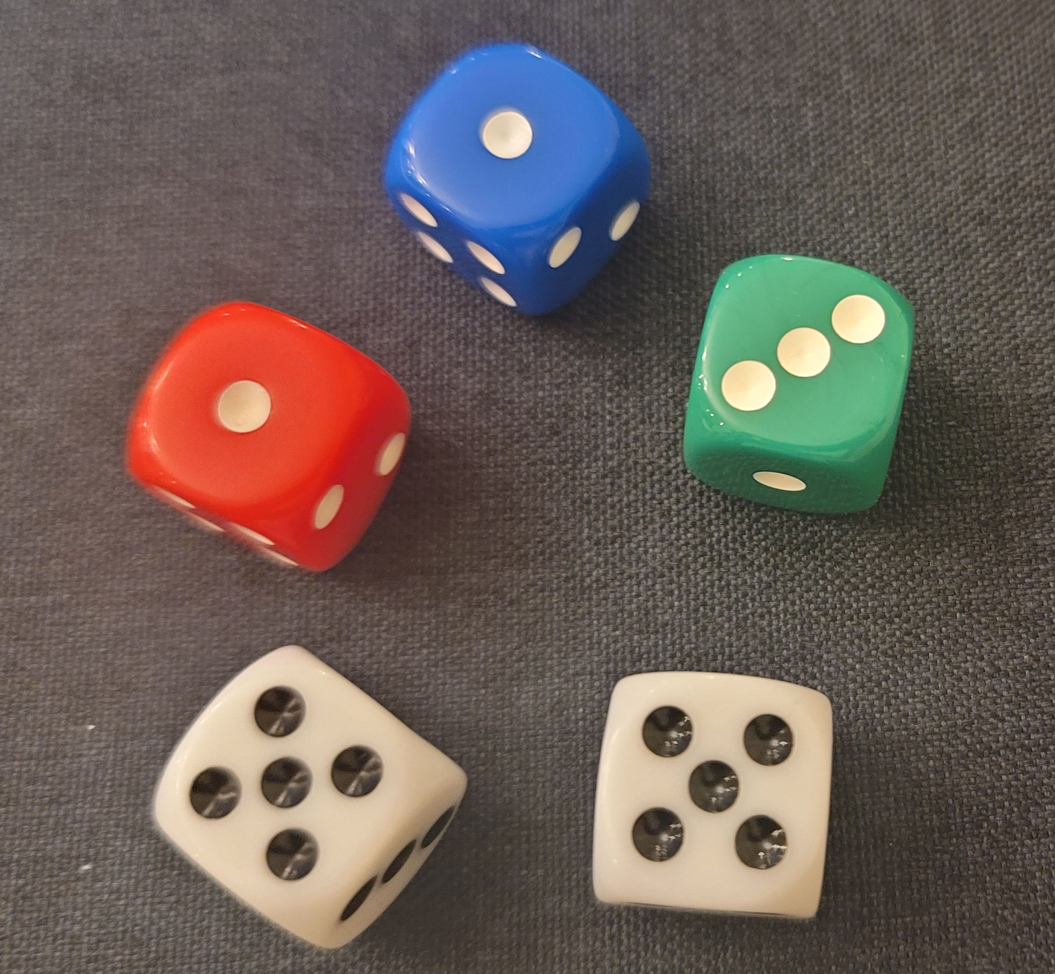 1) 인원에 상관없이 각자 주사위 5개를 던져서 나오는 것을 가지고 점수를 계산하여 일정한 점수를 획득하면 끝나는 게임입니다. 그러니 준비물은 주사위 5개입니다. (주사위 5개)