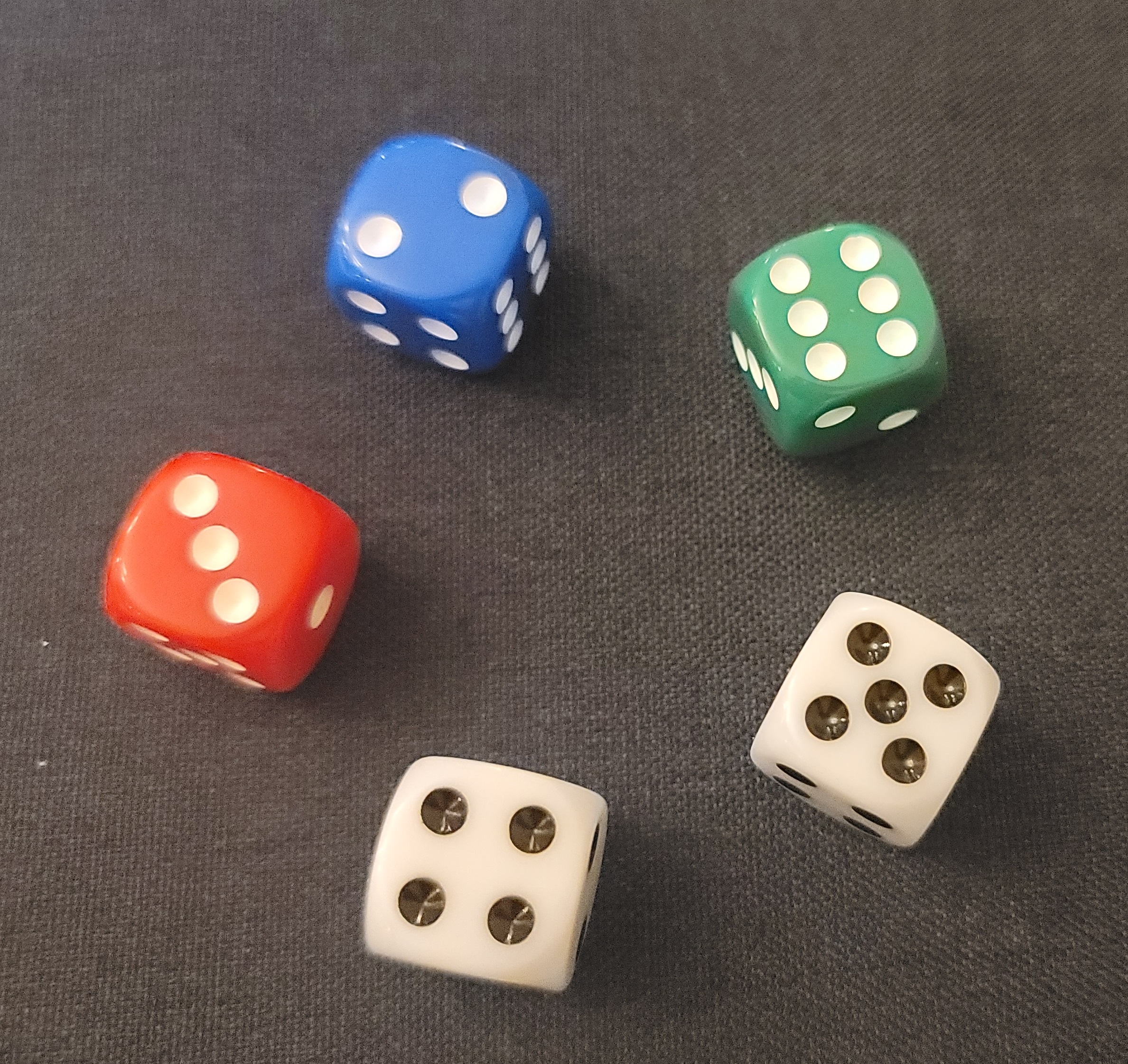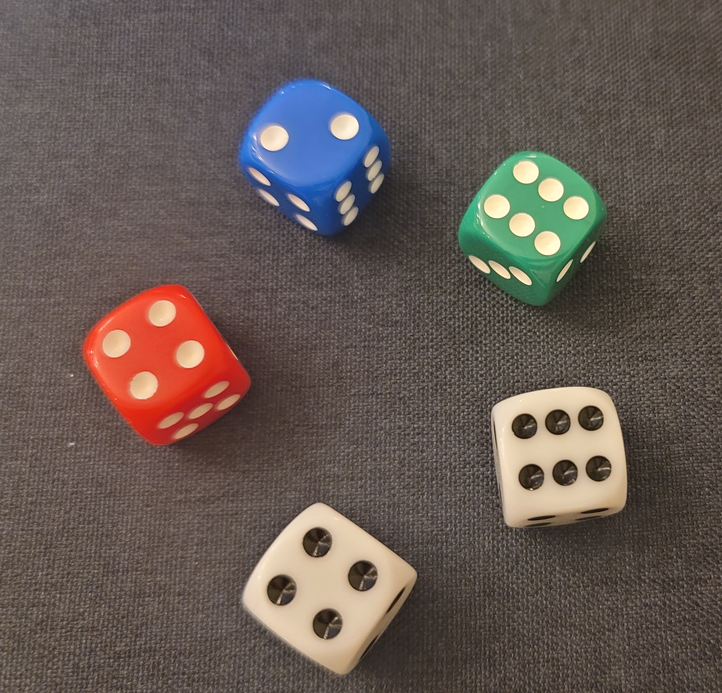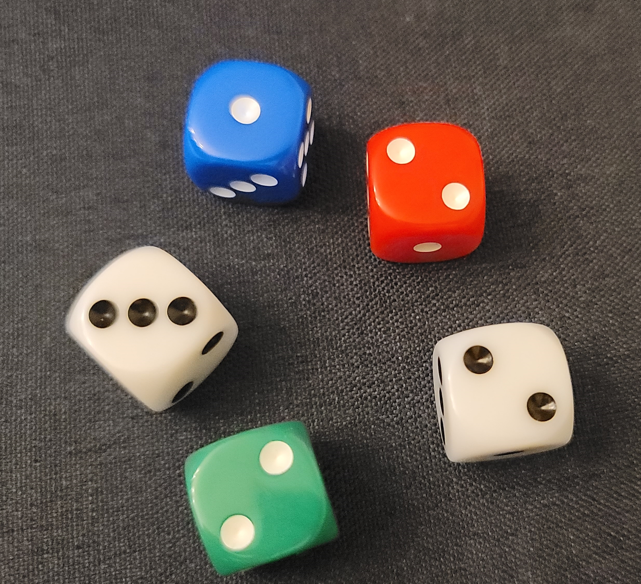 1) 인원에 상관없이 각자 주사위 5개를 던져서 나오는 것을 가지고 점수를 계산하여 일정한 점수를 획득하면 끝나는 게임입니다. 그러니 준비물은 주사위 5개입니다. (주사위 5개)