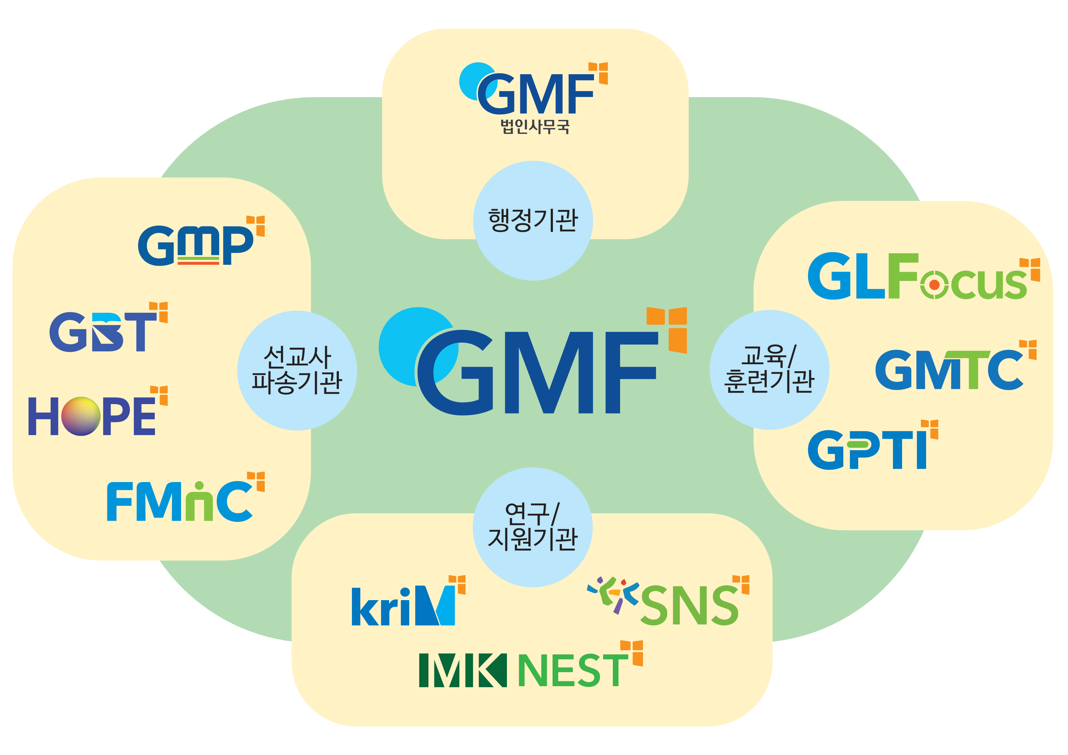 GMF는 효과적인 선교사역을 위해 설립된 한국교회의 자생적인 선교단체입니다. 계속 발전하는 과정에서도 필요에 따라 전문적인 역할을 감당하는 기관들이 추가로 설립되었습니다. 현재 열개의 전문 기관들이 하나의 공동체로 연합되어 유기적으로 사역하고 있습니다.