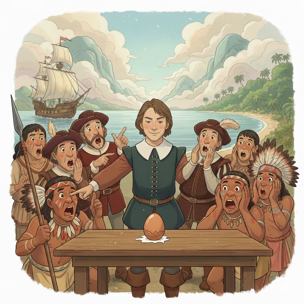 계란을 세우는 목표를 가진 사람들에게 콜럼버스는 영웅입니다. 역으로 말하면 계란을 깨뜨려 세운 콜럼버스를 대단하다고 여기는 사람 혹은 문화는 계란을 세우려는 동일한 목표를 가지고 있다고 할 수 있습니다. 그러니 그런 문화속에서 '계란을 왜 세우려고 해?'라고 질문하면 부적응자로 취급받을 수 있습니다. 그리고 그런 문화가 힘을 가지고 있다면 그 힘이 미치는 영역에서는 비록 다른 생각을 가지고 있더라도 계란을 세우려는 사람, 그래서 깨뜨려 결국 성공하는 사람들에게 마지못해 박수를 쳐야할지 모릅니다.
